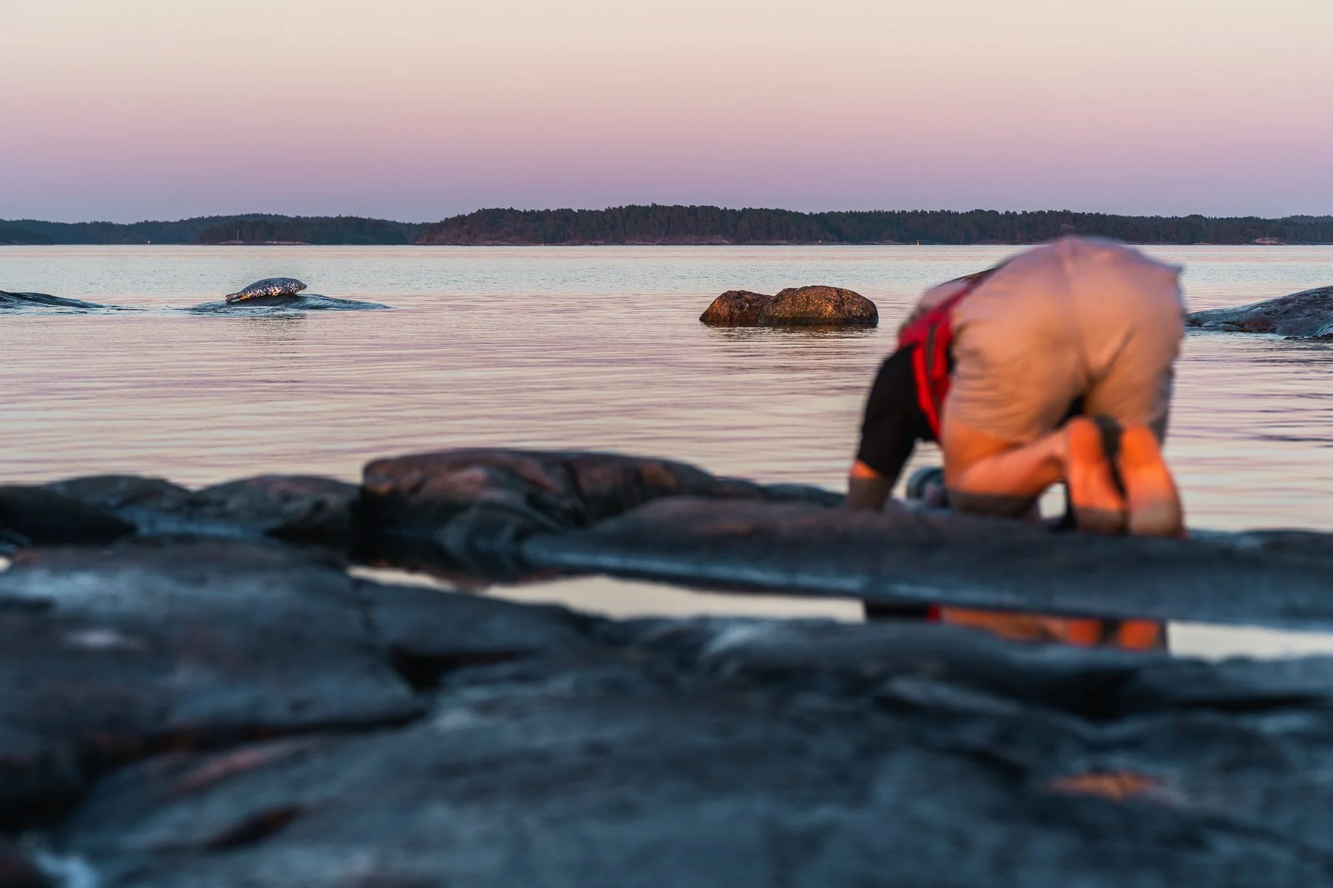 Hylje tuntuu olevan perusluonteeltaan varsin utelias eläin. Vedessä liikkuessaan ne ovat omassa elementissään ja itseluottamus korkealla ne saattavat tulla hyvinkin lähelle veneellä liikkuvaa kuvaajaa. Hylkeiden pyöriessä veneen ympärillä on monesti tullut mietittyä, miten nämä uteliaat veijarit suhtautuisivat vedessä liikkuvaan kuvaajaan. Tällainen kokeilu vaatisi tietysti kunnollisen sukelluskotelon kameralle, joten saapa nähdä riittääkö budjetti koskaan kyseisen idean toteuttamiseen. Hylkeiden kuvaaminen eri tavoilla jatkuu kuitenkin varmasti ja lukematon määrä hyljekuvia on vielä ottamatta. Esimerkiksi talvikaudella en ole hylkeiden kuvausta päässyt kokeilemaan vielä ollenkaan. Miltä kuulostaisi kuvat vaikkapa kallioiden sijaan ajelehtivien jäälauttojen päällä lepäilevistä hylkeistä?